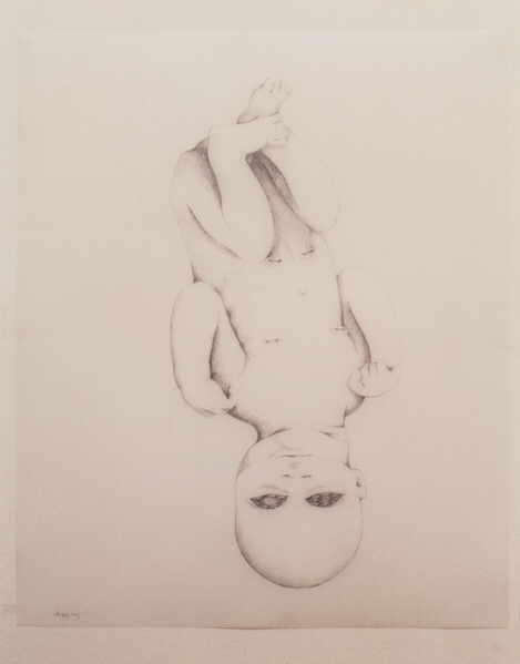 Foetal Humanoid is drawn on translucent vellum paper: which looks greyish in photos. It was created by Debbie O'Rourke as a study for the monumental installation Milkweed Patch. It cannot be reproduced except by permission of the artist. |