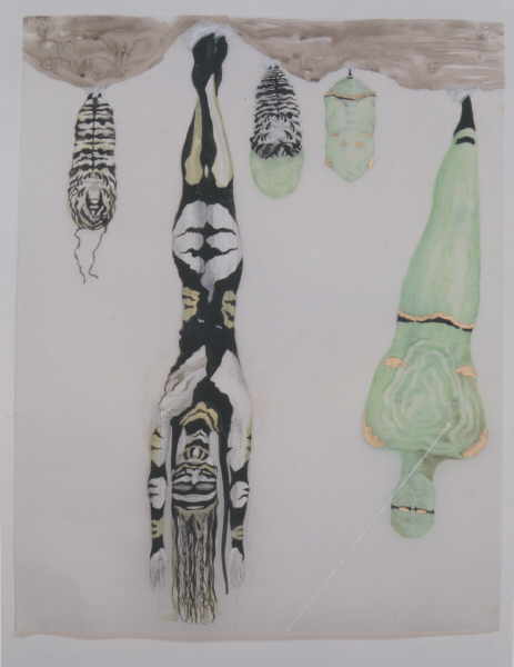 Study for Elegy is painted and drawn on translucent vellum paper: which looks greyish in photos. It was created by Debbie O'Rourke as a study for the monumental installation Milkweed Patch. It cannot be reproduced except by permission of the artist. |