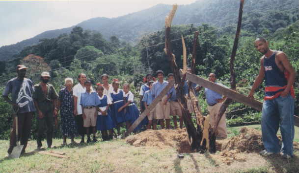 We had just finished setting the sculpture in the ground and were ready to pour the concrete when we were visited by Miss Tina's class on their way home from a field trip with Asa Wright's "Auntie Gail" Abdulla. It was a great day.