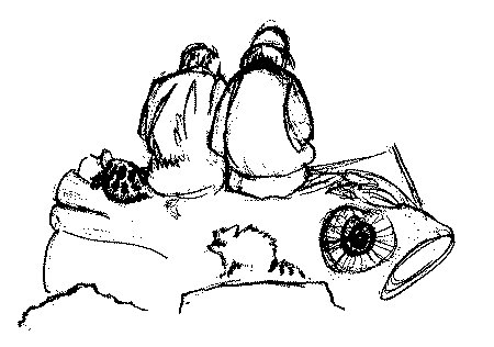 Couple on log, Humber Bay lakeshore: ink drawing