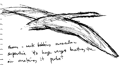May 15: Composed partly of sculptural surface and partly of an irregular white patch, there is definitely still a swan in the side of the log so I carve it, trying with a line to convey the weight of the creature. The weather is still cool, unsettled. I'm concentrating, my ears full of crashing wave-sounds, content until I wonder whether I would even hear if anyone snuck up on me. To test, I look up to find surrounding me like a flock of bright finches wearing pink, sherbet orange and lime green, a busload of tourists! |