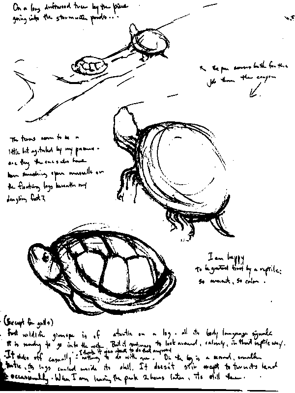 beaver sign (tree freshly-felled), red-eared slider turtles,