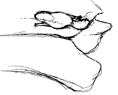 Beaver form in log, Humber Bay lakeshore: ink drawing |