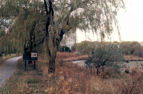 November 14, 2002: probably my last day on the lakeshore until spring. I took the long way around, through the western side of Humber Bay Park.As I passed the wetland before the bridge, I saw that it had drained into a mudflat. Knowing this is the best time of year to find bones, I went to explore. |