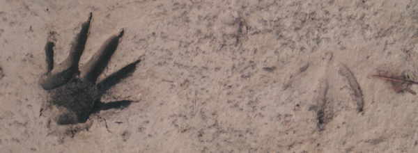 Raccoon and bird prints on mud flat, Humber Bay Park West, Toronto Ontario Canada |